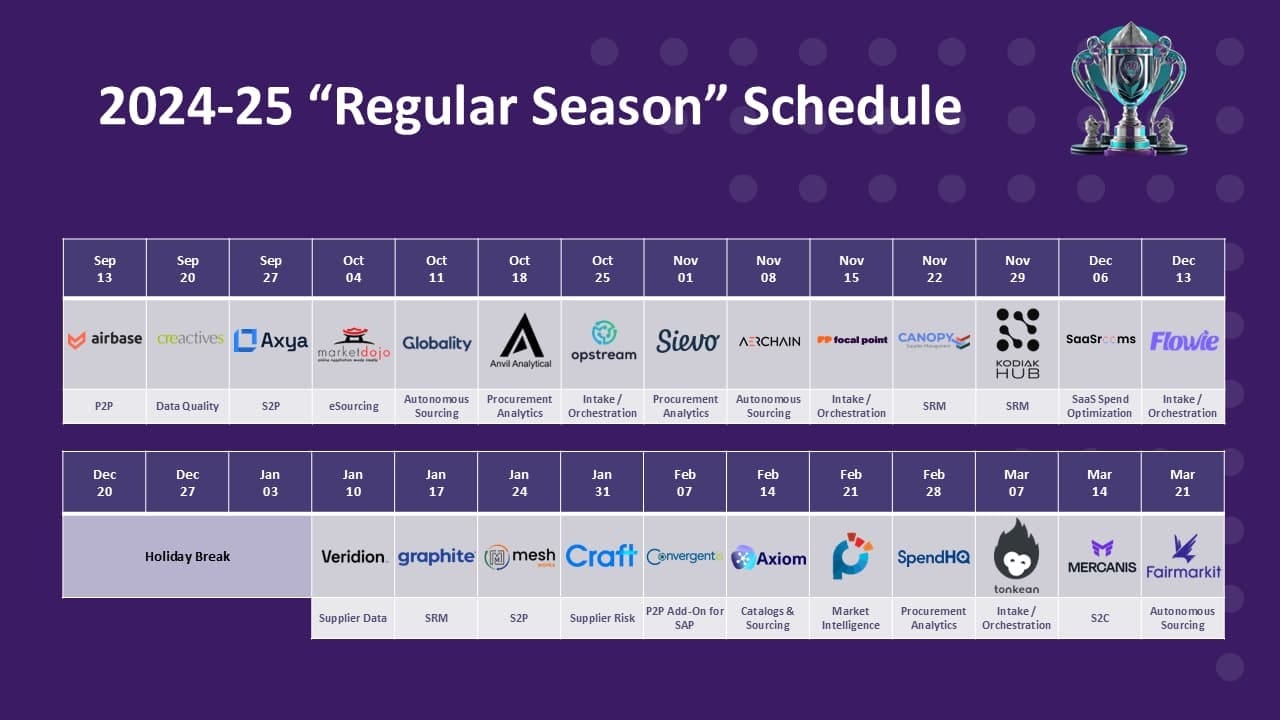 The 2024-25 ProcureTech Cup “Regular Season” is well on its way.